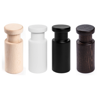 Elle est disponible en différentes finitions: en bois de hêtre naturel, en blanc, en noir, et en bois de frêne effet wengé.