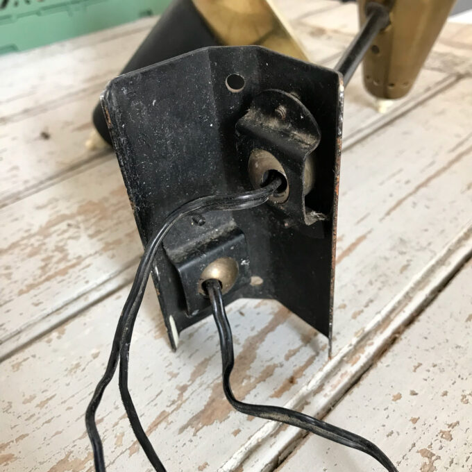 Détails électriques : douille ampoule E14 à baïonnette (non fournie), boutons poussoirs, électricité d’origine