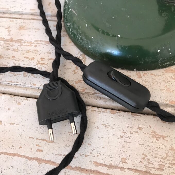 Douille noire ampoule E27 (non fournie), câble textile noir tressé et prise/interrupteur noir