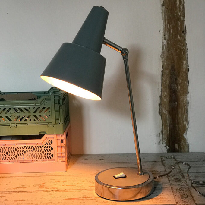 Cette ancienne lampe de bureau en métal gris apportera une touche vintage et industrielle dans une chambre ou un bureau.