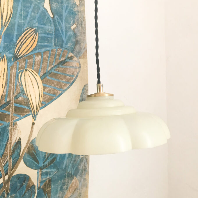 Un rendu très vintage pour cette suspension originale en forme de fleur de couleur crème