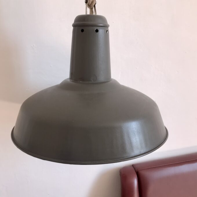 • Abat-jour émaillé kaki pour une touche de sophistication.