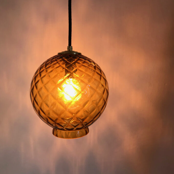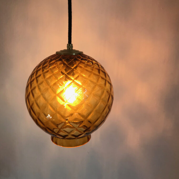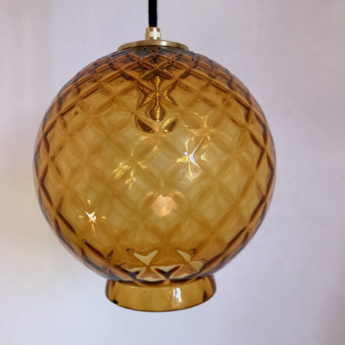 Suspension globe en verre ambré vintage