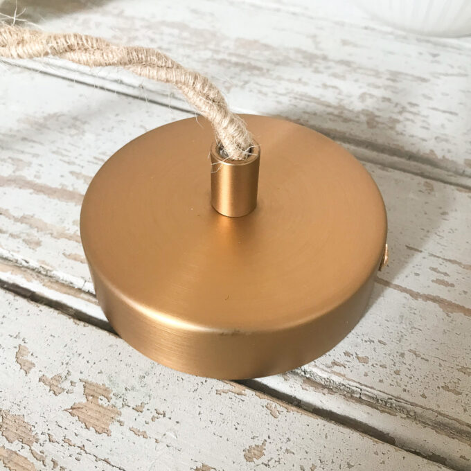 Détails électriques : câble torsadé en lin, rosace plafond en métal laiton, douille en thermoplastique doré, serre-câbles et dessus en laiton Ampoule à vis E14 (non fournie)
