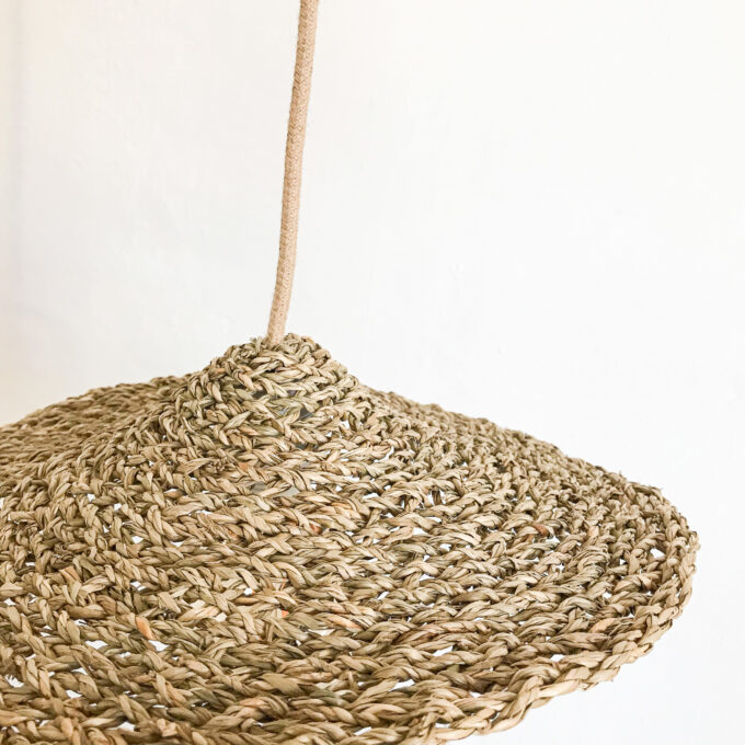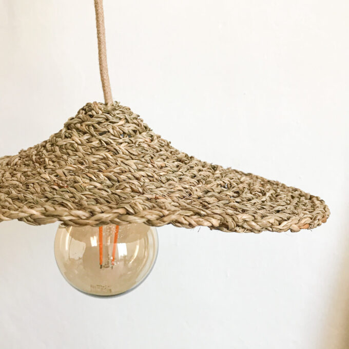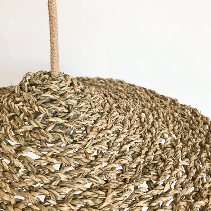 Cette suspension bohème sera parfaite en complément de l’éclairage principal. Elle est réalisée à partir de jonc de mer et diffusera une lumière chaude dans un coin du salon ou bureau ou pour lampe de chevet.