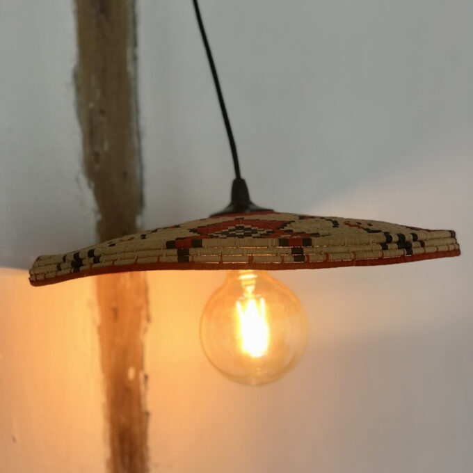 Créations, Luminaires, Suspensions, VenduSuspension plateau ethnique chiné