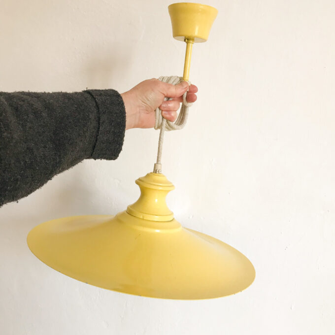 Suspension vintage avec abat-jour en métal jaune